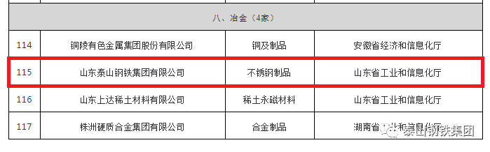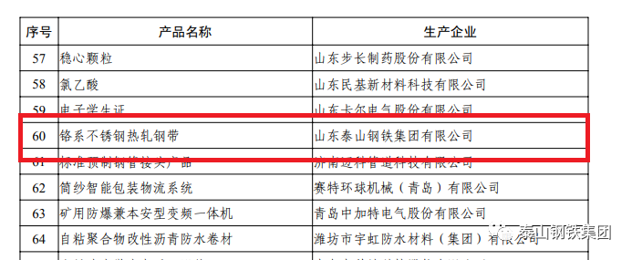 山东省工业和信息化厅、山东省工业经济联合会联合下发《关于公布第五批山东省制造业单项冠军产品和通过复核的第二批制造业单项冠军企业名单的通知》,集团“铬系不锈钢热轧钢带”光荣入选山东省制造业单项冠军产品。