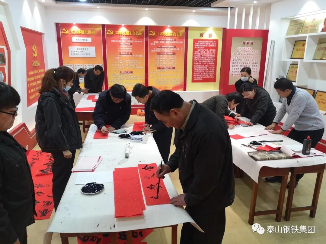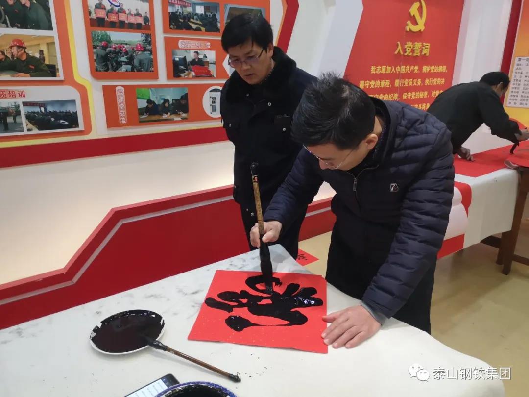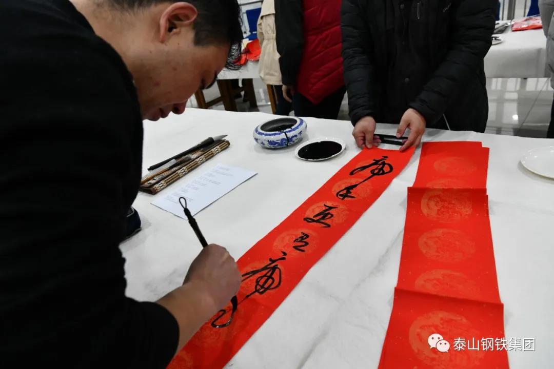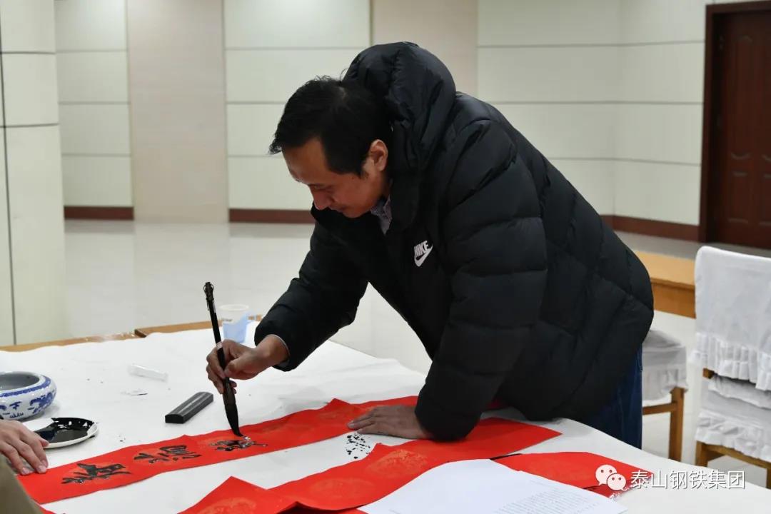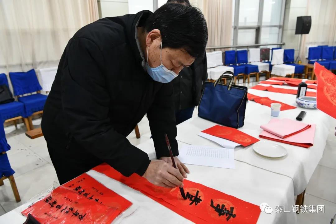 为认真贯彻党的十九届六中全会精神,弘扬中华优秀传统文化,营造欢乐喜庆祥和的节日氛围,1月12日上午,由区文联(区社科联)、泰钢文联联合主办,区书法家协会、泰钢书法协会承办的“春‘莱’福至——莱芜区文联送春联送福字走进泰山钢铁暨泰钢文联‘文艺筑梦’志愿服务项目”在集团公司经贸楼三楼会议室举行。