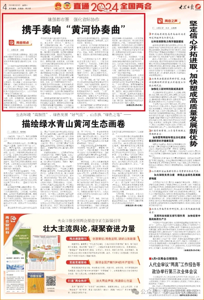 十四届全国人大二次会议开幕会结束后,王董事长接受了山东电视台、《大众日报》新媒体的采访。他表示,要贯彻落实好会议精神,抓好绿色精品钢建设,向着高端、绿色、智能的方向跨越前行,为山东、济南的高质量发展添砖加瓦。